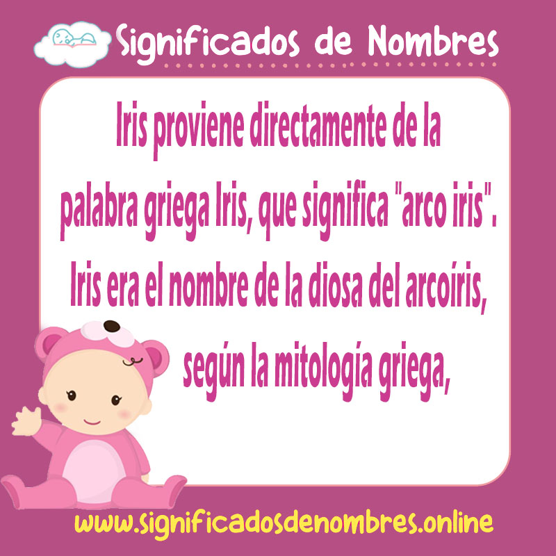 - Origen: Iris es un nombre derivado de la mitología griega que significa «diosa del arcoíris»