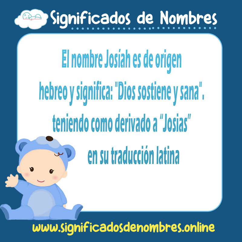 El nombre Josías se usa tradicionalmente como nombre de niño. Es de origen hebreo y significa: «Dios sostiene y sana». El nombre Josias es una variación latina de este significado.