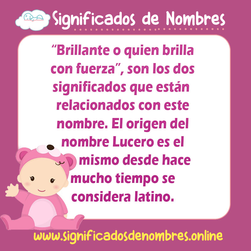 “Brillante o quien brilla con fuerza”, son los dos significados que están relacionados con este nombre. Tienes la oportunidad de escoger el significado que más te guste, pero el origen del nombre Lucero es el mismo desde hace mucho tiempo se considera latino.