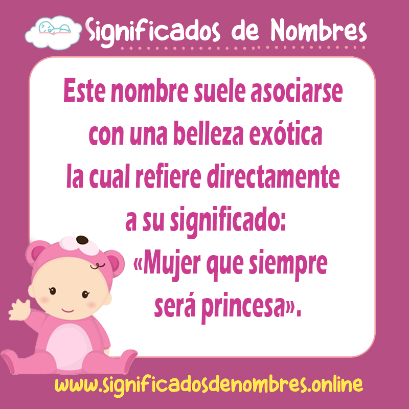 Es precisamente por su significado que suele asociarse con una belleza exótica refiriéndose así a «Mujer que siempre será princesa». Des este modo es que constantemente se relaciona con la nobleza, un honor que no era concedido a cualquiera
