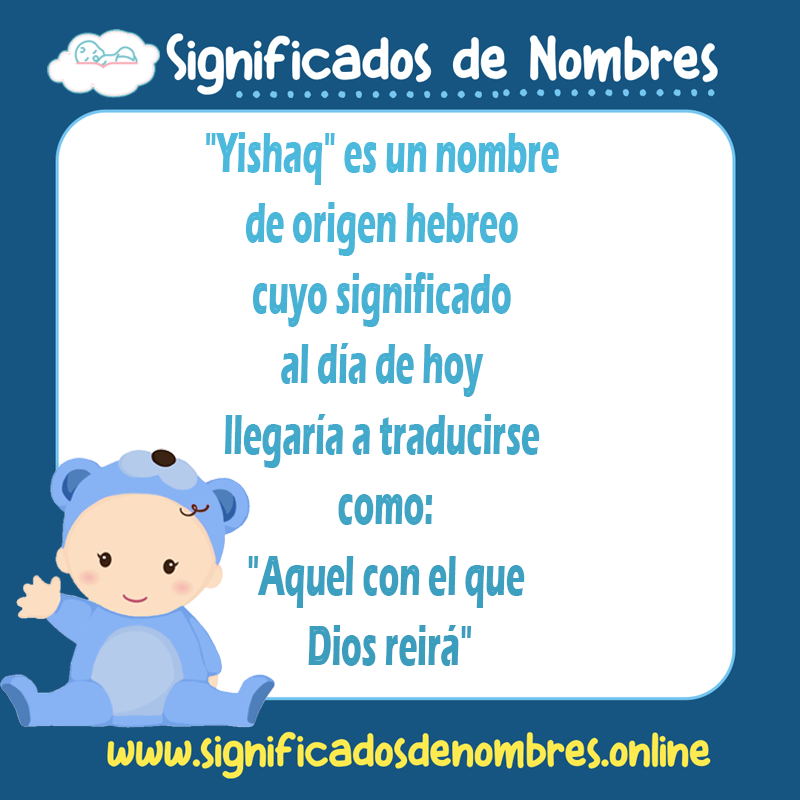 Como bien se había mencionado, este es un nombre de origen hebreo y es pronunciado en su lengua nativa como «Yishaq» cuyo significado al día de hoy llegaría a traducirse como: «Aquel con el que Dios reirá» , sin embargo al pasar de los años tambien ha llegado a interpretarse como: «El jefe de tu jefe».